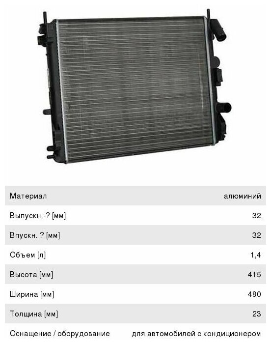Engine Radiator, 32mm RENAULT LOGAN +AC 04- [1.4,1.6], SANDERO 08-, CLIO 98-05 70208 ASAM 70208