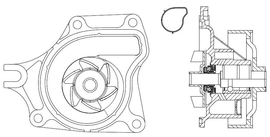Type: water pump, OE code: Mazda ZJ01-15-010A, Mazda ZJ01-15-010B, Mazda ZJ01-15-010C, car model: Mazda 2, Mazda 3, set quantity: 1pc.