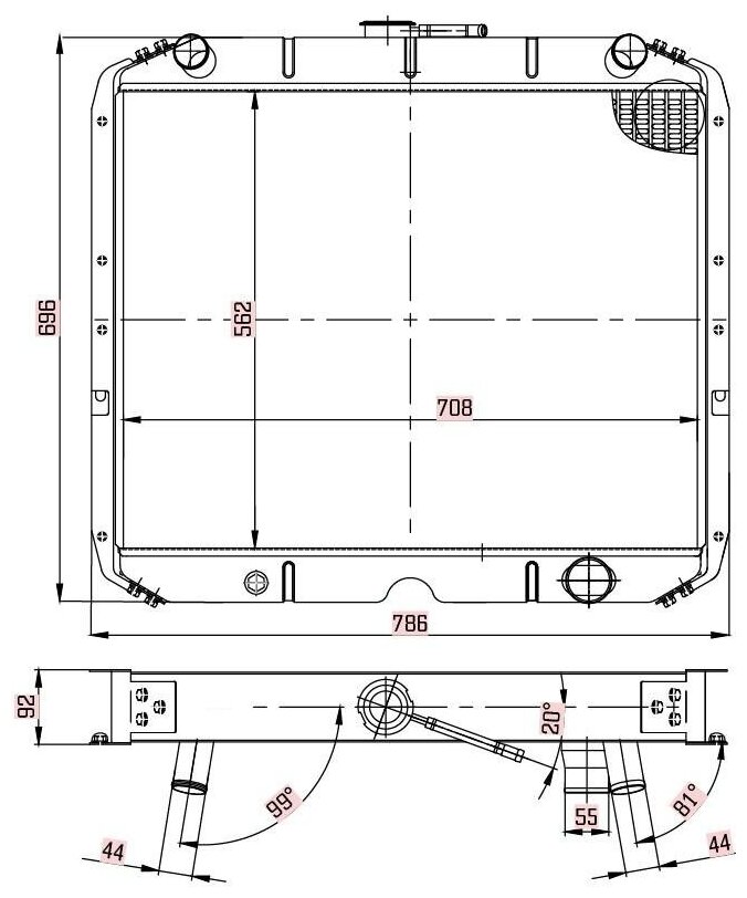 Cooling radiator for Ural 4320/5323 vehicles with YaMZ LUZAR engine