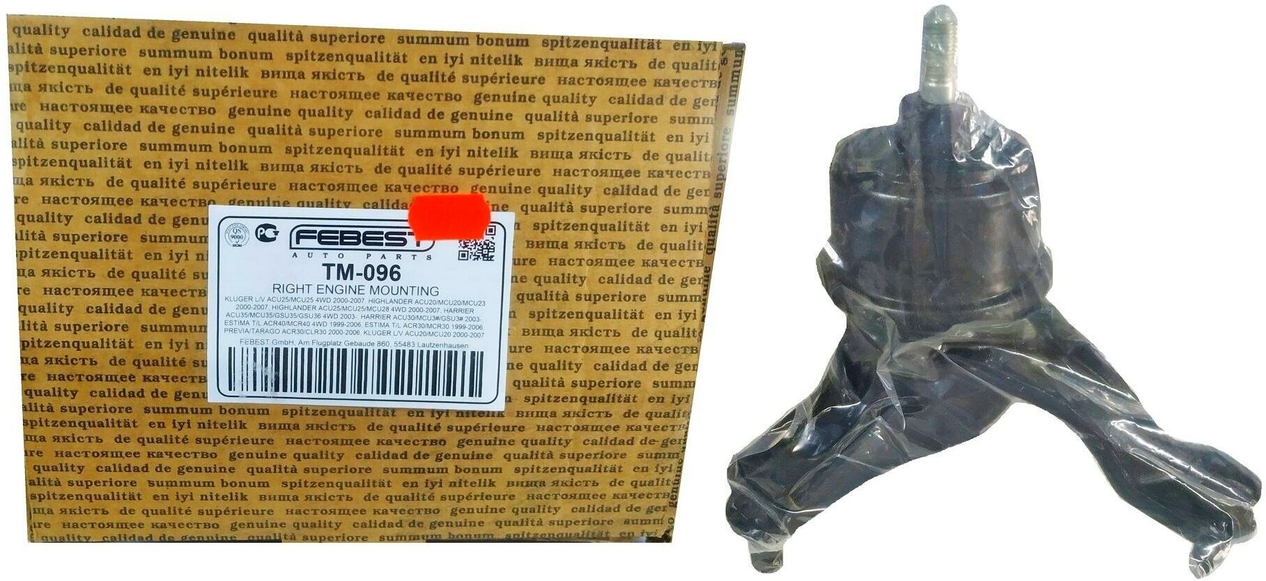 Type: engine mount, OE code: Toyota 12362-28020, car model: Toyota Estima, Toyota Harrier, Toyota Highlander, Toyota Kluger, Toyota Previa, Toyota Tarago, set quantity: 1pc.