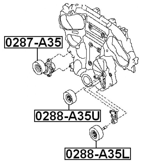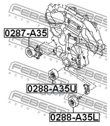 Type: tension pulley, OE code: NISSAN 11955-JA10A, NISSAN 11955-JA10B, NISSAN 11955-JA10C, NISSAN 11955-JA10D, car model: Nissan Elgrand, Nissan Murano, Nissan Quest, Nissan Teana, set quantity: 1pc.
