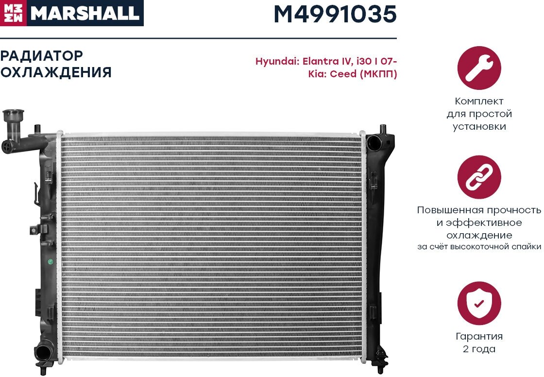 Cooling radiator MARSHALL M4991035 Hyundai: Elantra IV, i30 I 07-; Kia Ceed manual transmission; cross-number Nissens 66674; OEM 253101H000