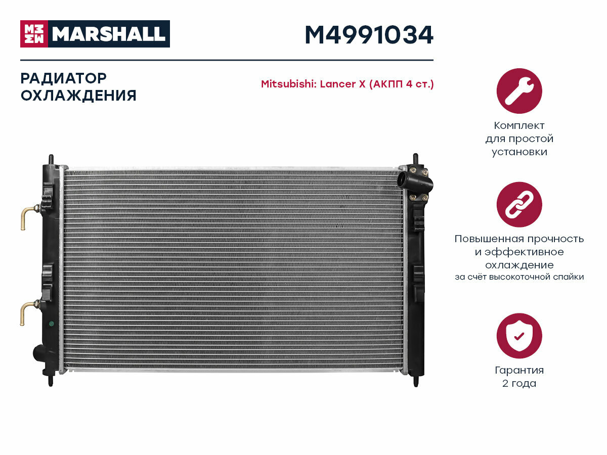 Cooling radiator MARSHALL M4991034 Mitsubishi: Lancer X automatic transmission 4st; cross-number Nissens 628979; OEM 1350A298