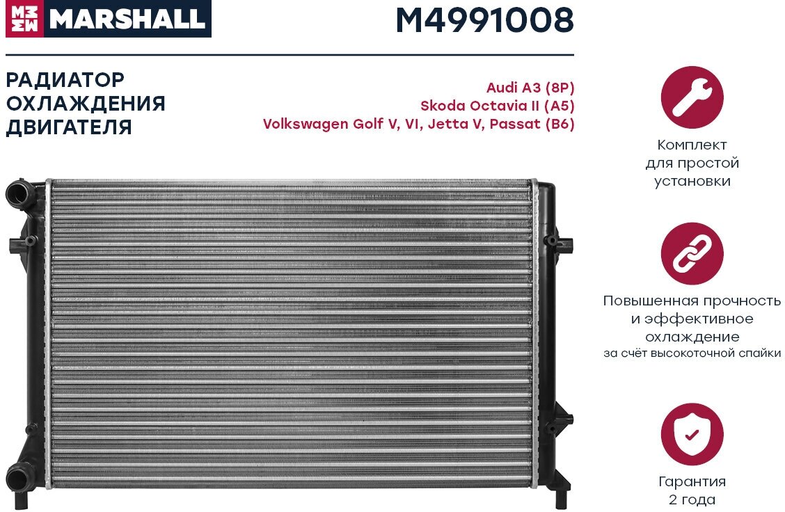 Engine cooling radiator MARSHALL M4991008 Audi: A3 Skoda: Octavia Volkswagen: Golf, Jetta, Passat; cross-number Nissens 65277a
