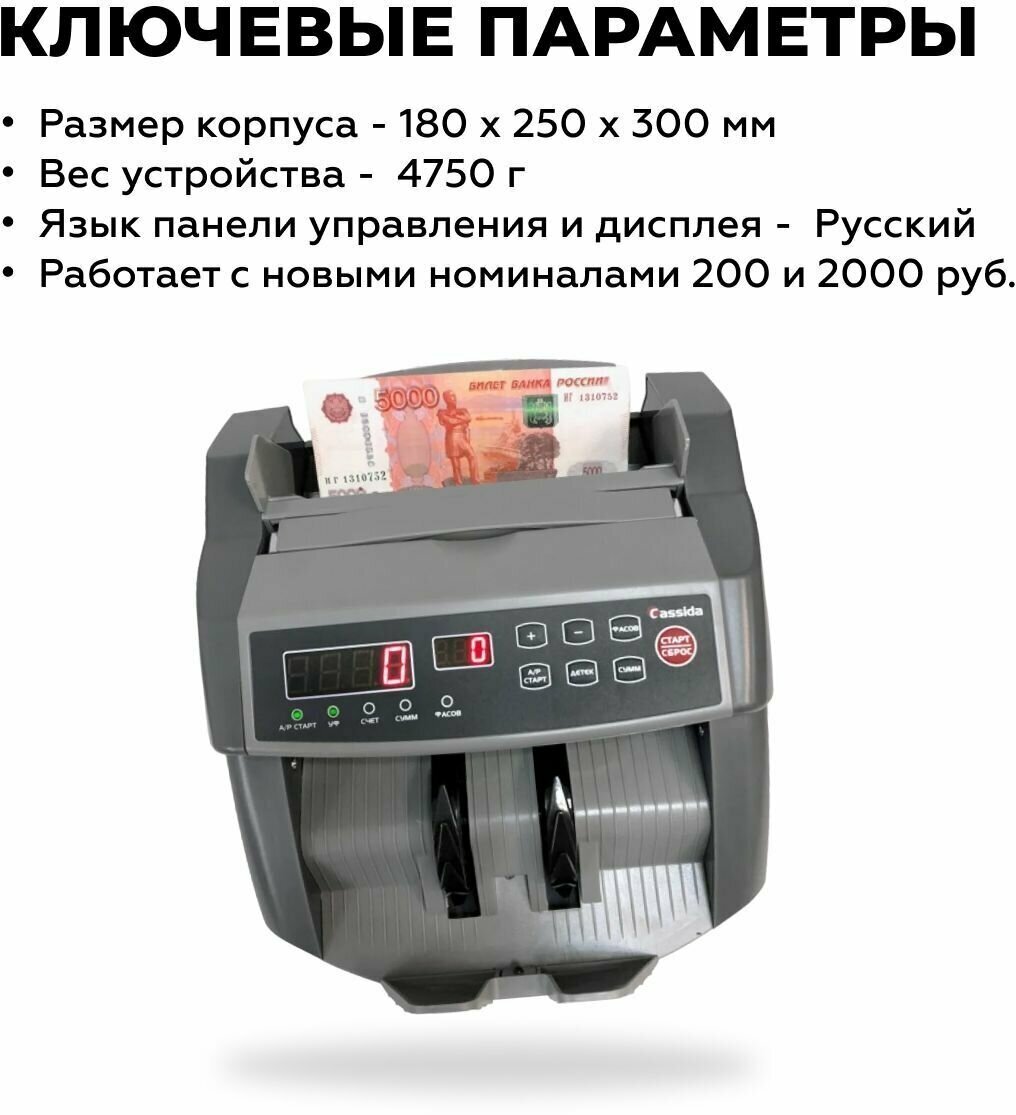 Counting speed 1000 banknotes per minute, weight 4.75 kg