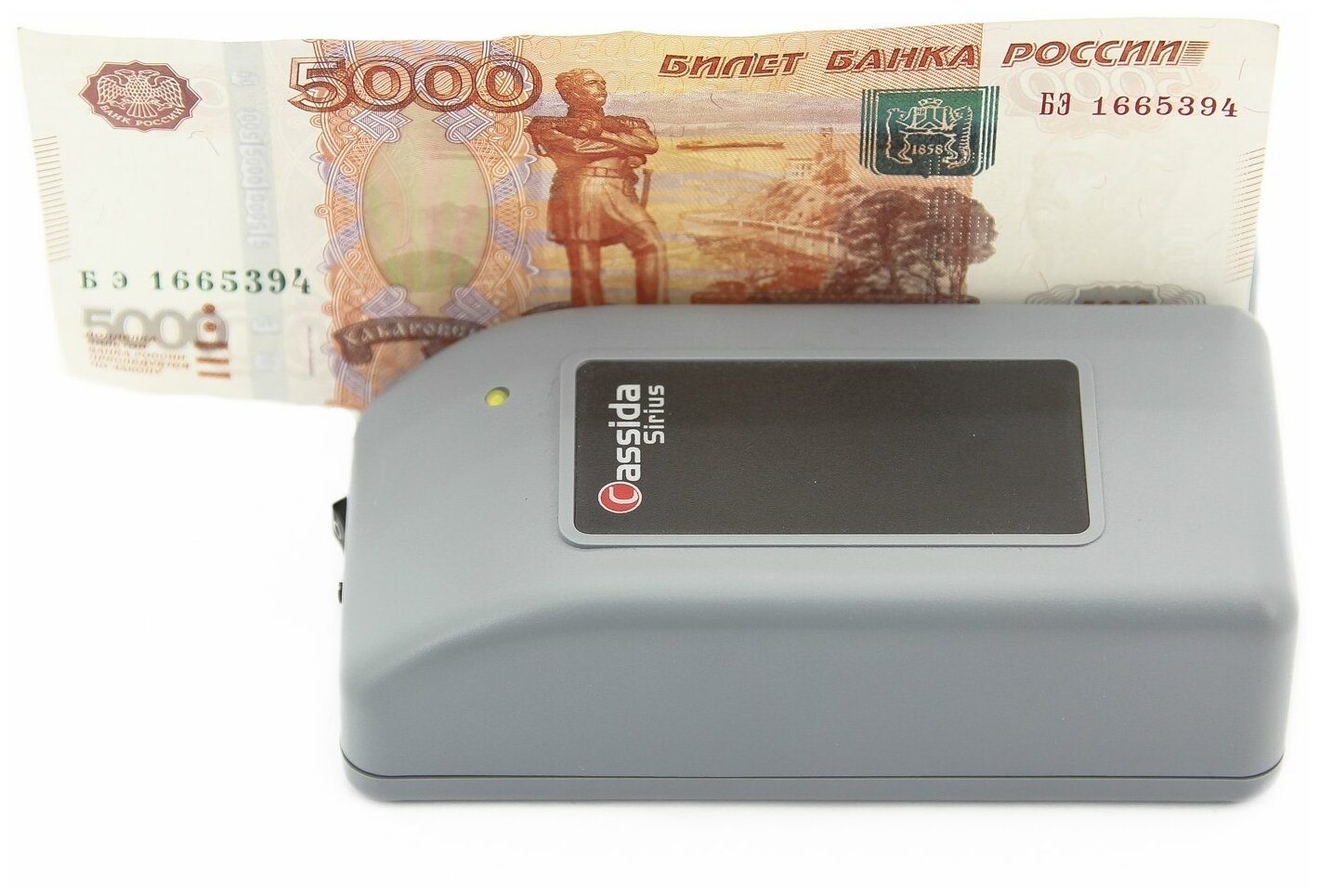 Type: automatic detector, purpose: banknotes, portable, detection type: anti-stokes, currency support: Russian ruble RUB, power supply: built-in battery, mains supply