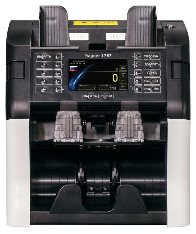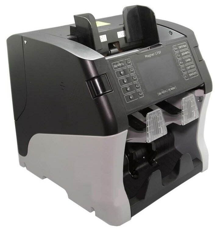 Type: counter, purpose: banknotes, functions: detection of counterfeit banknotes, sorting, counting the number of banknotes, detection type: infrared, magnetic, optical density, ultraviolet, features: display, sounds