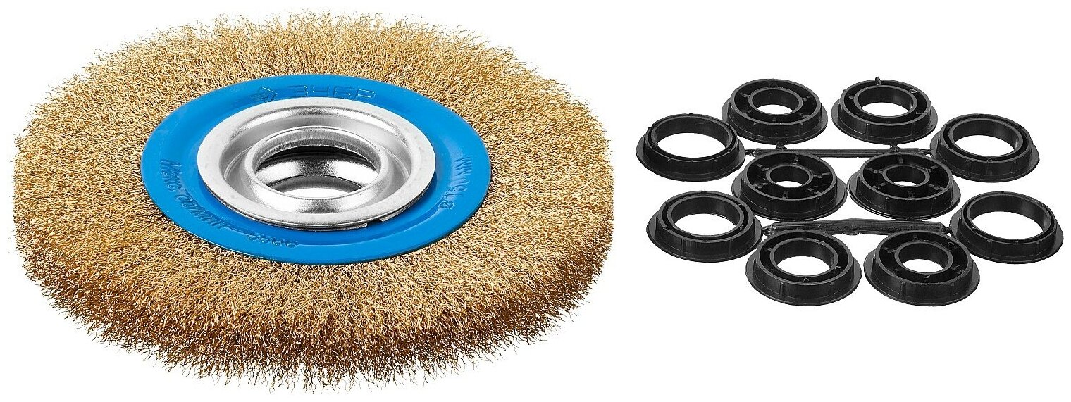 ZUBR Professional. Disc brush for grinding and grinding machine, twisted brass-plated steel wire 0.3mm, 150x32mm