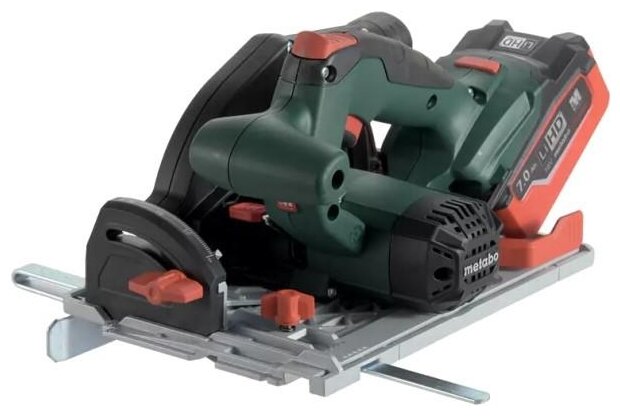 Two batteries, charger, saw blade, rip fence, wrench, MetaLoc case