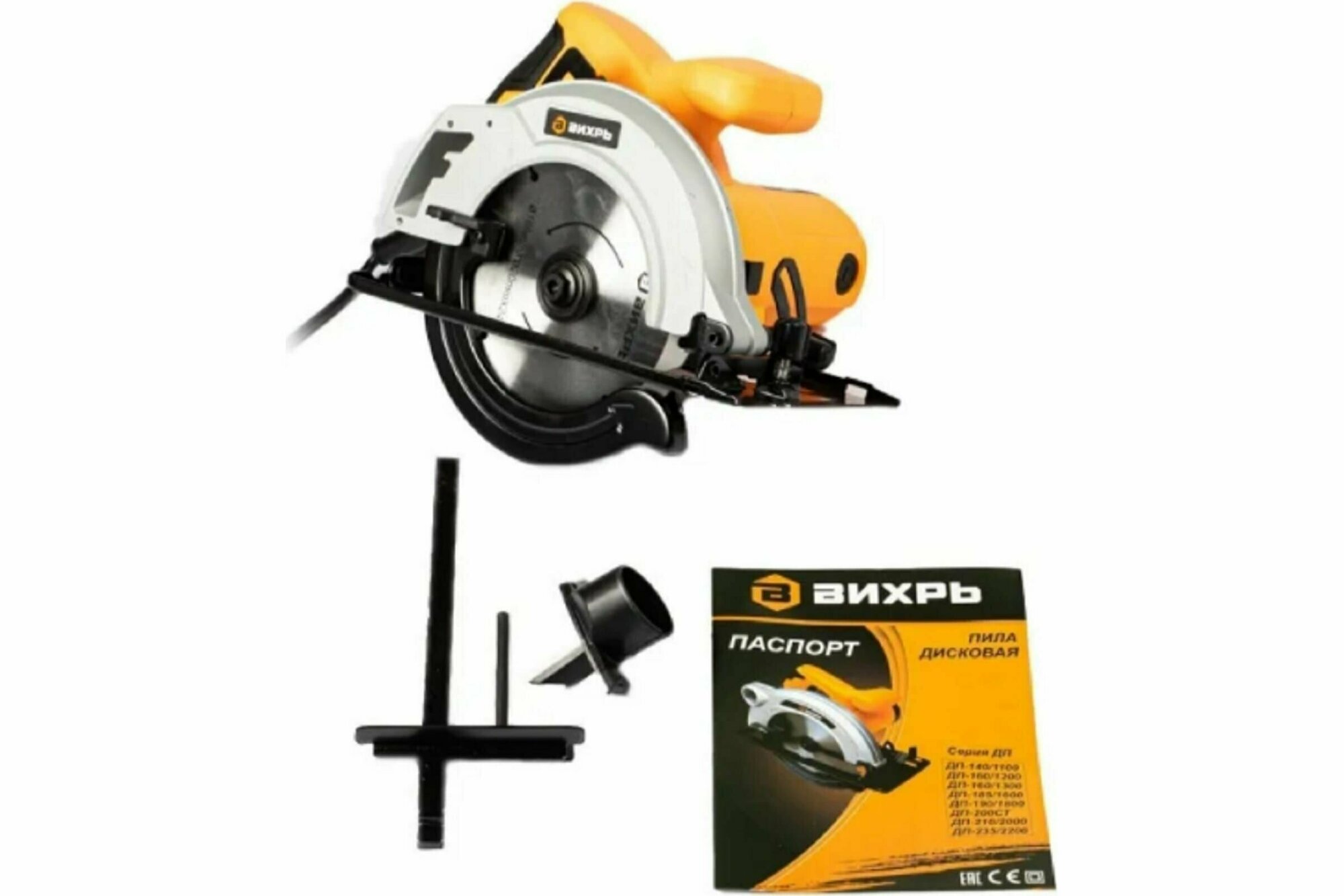 Saw blade, parallel guide, hex key, passport, packaging