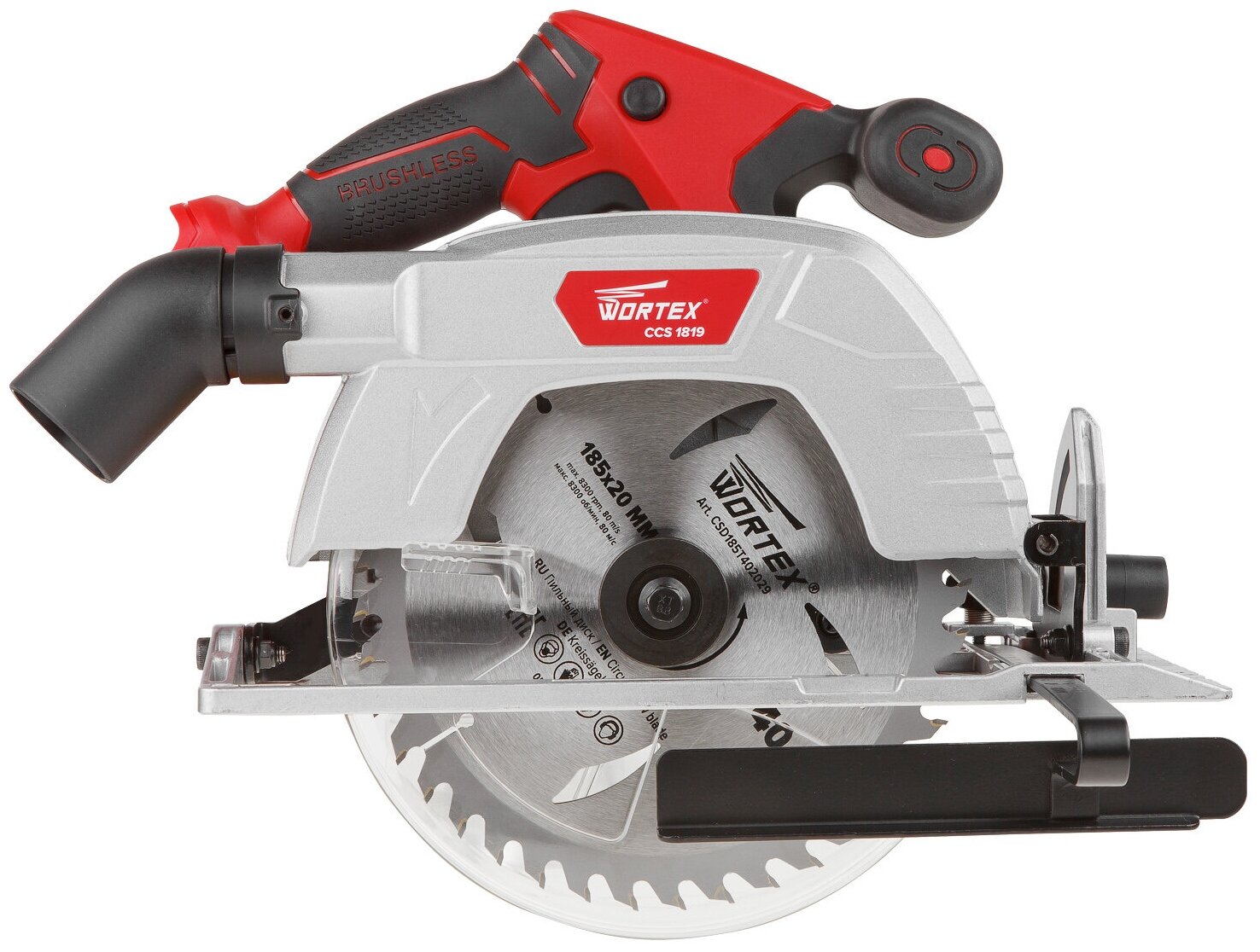 Cordless circular WORTEX CCS 1819 in box. ALL1 18.0 V, without battery, 190x20 mm, up to 63 mm