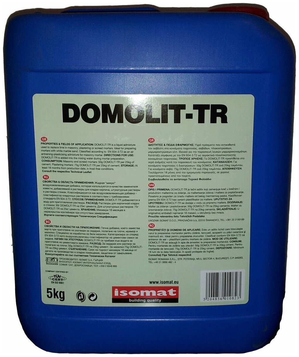 Consumption: for brickwork and screed: 50 g per 25 kg of cement.<br>For plaster: 75 g per 25 kg of cement