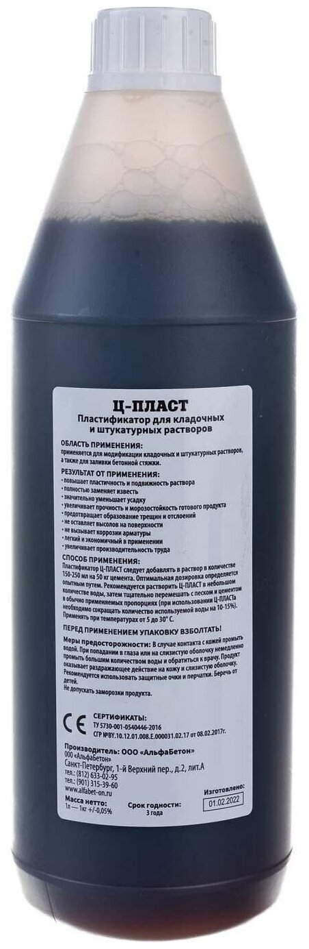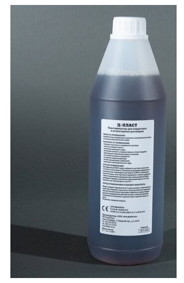 Description: Type of additive: plasticizer, state of aggregation: liquid, for cement mortar, for screed mortar, plasticization, frost resistance, increase in strength, increase in durability, decrease in material consumption