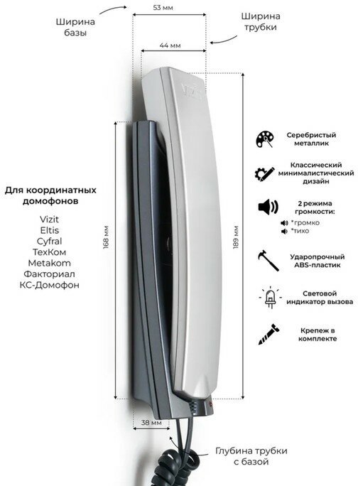 Duplex communication; weight no more than 0.18 kg; designed to work as part of VIZIT intercoms series 300, 400, SM, N, M; stepwise call volume control; LED call signal indication