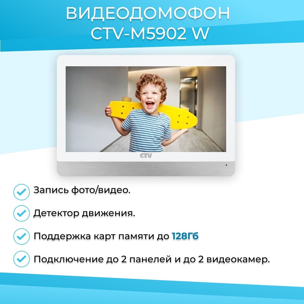 Diagonal 9 inches, resolution 1024x600, support for MicroSD class 10 up to 128 GB, Wi-Fi IEEE 802.11 b/g/n; additional functions: autoinformer, answering machine, playback of mp3 audio files, playback of mp4 or avi video files, polyphonic