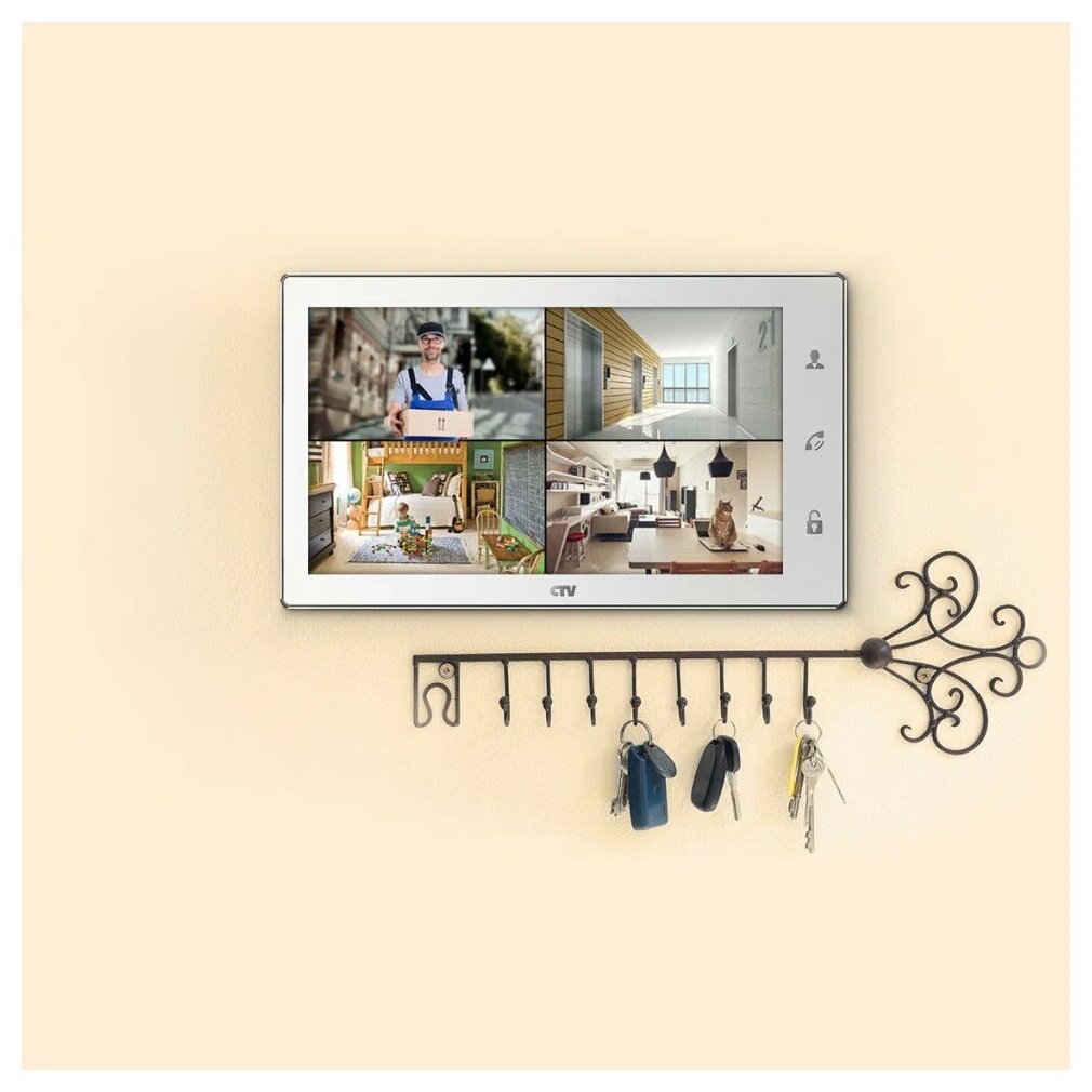 Type: monitor for intercom/video intercom, height: 157.80 mm, width: 264.80 mm, depth: 25.30 mm, mounting method: wall-mounted, material: plastic, input voltage: 240 V, number of connected subscribers: 2, image system: PAL, Color