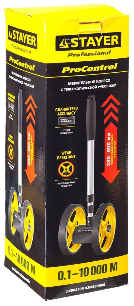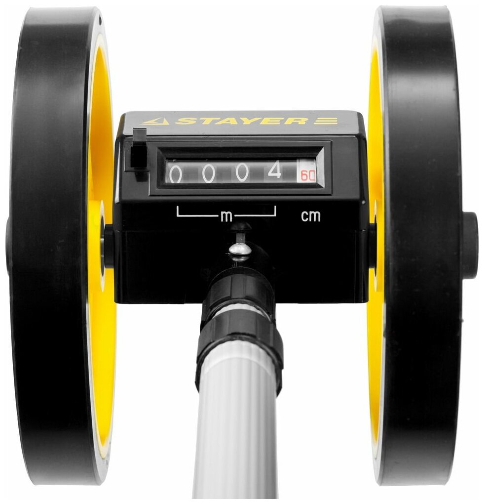 Type: analog, wheel diameter: 16 cm, length: 90 cm, maximum measuring range: 9999.90 m, measuring system: metric