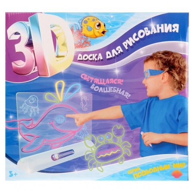 Stand, 4 colored markers, 3D glasses, 3 colored pictures, instructions