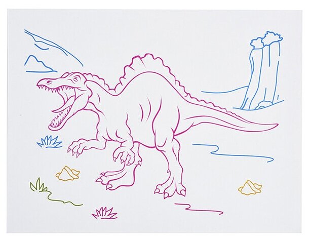 Markers 4 pcs., 3d glasses, stencils with dinosaurs
