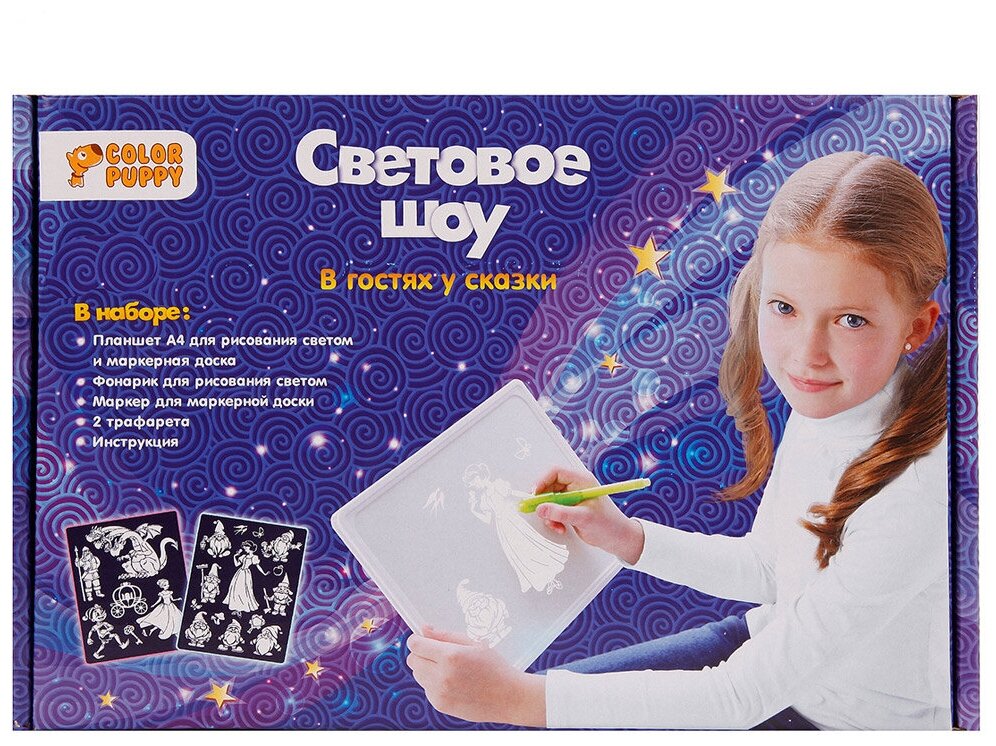 Tablet 2 in1 one side for drawing with light, the second for drawing with a marker, a flashlight for drawing with light, a marker for a marker board, a stencil - 2 pcs., instructions for use