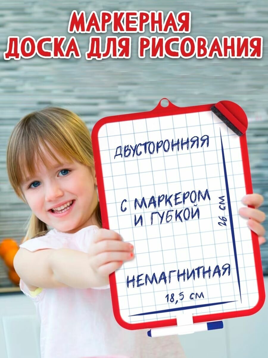 Double-sided drawing board for children with a marker and a sponge