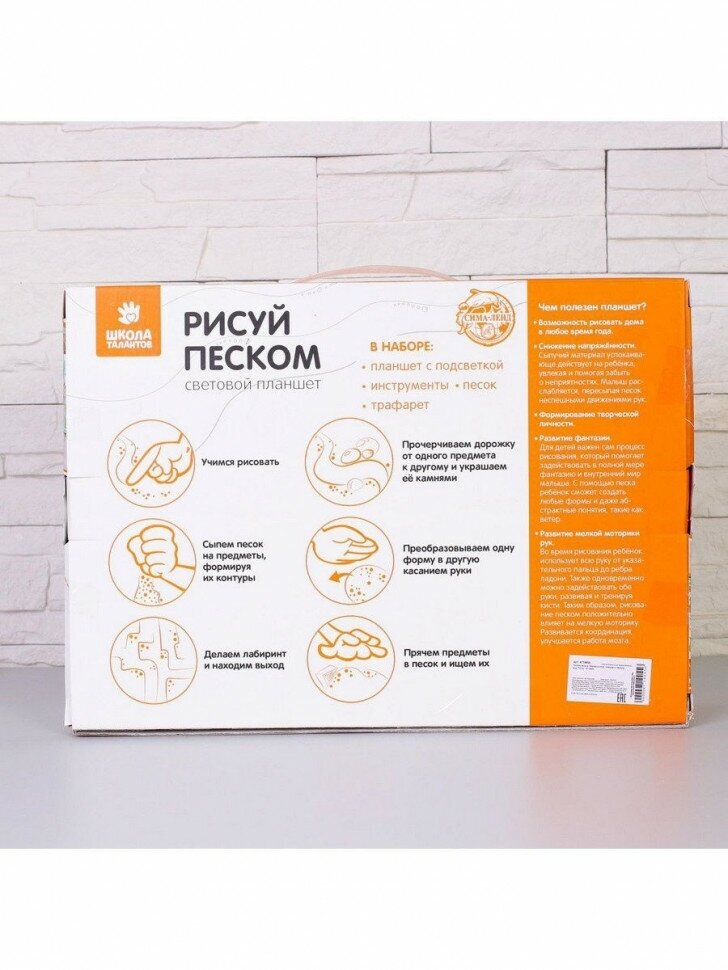 Tablet with USB cable, 1 kg of sand, brush, spatula