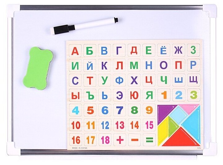 Marker, sponge, set of magnets, alphabet, numbers