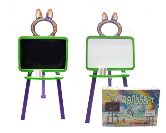 Easel, chalk, marker, sponge