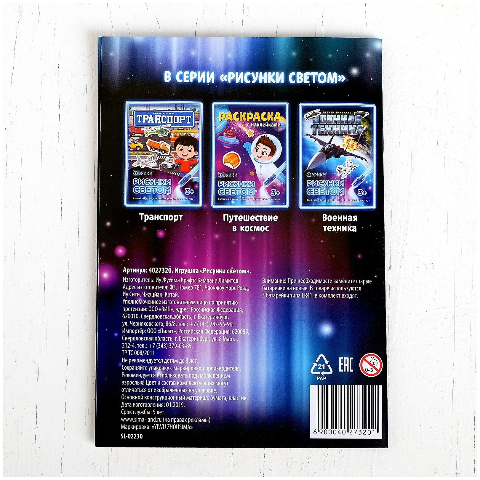 Tablet for drawing with light, stickers, coloring books, pen, 3 LR41 batteries