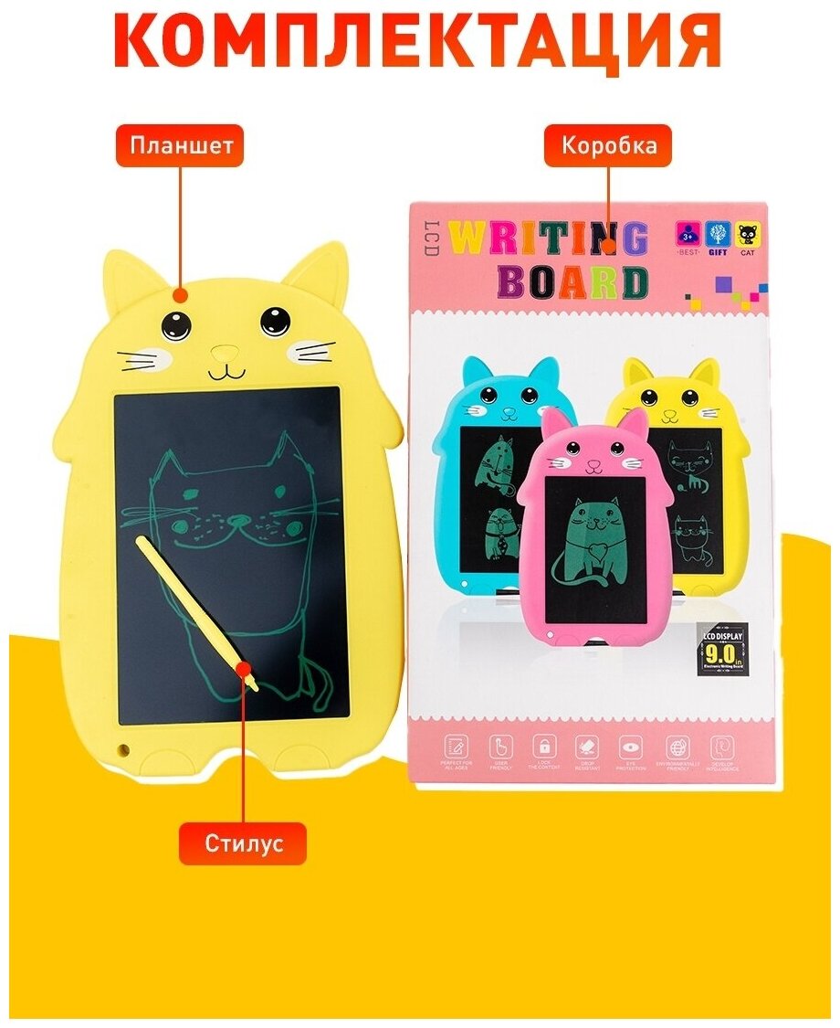 8.5 inch Yellow Cat Interactive Drawing Tablet for Children with Stylus pen