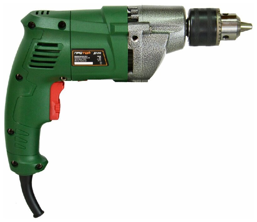 Type: drill, power type: mains, presence of impact for drill: hammerless, chuck type: key, functions: reverse, speed adjustment, power consumption: 910 W, design features: button lock on