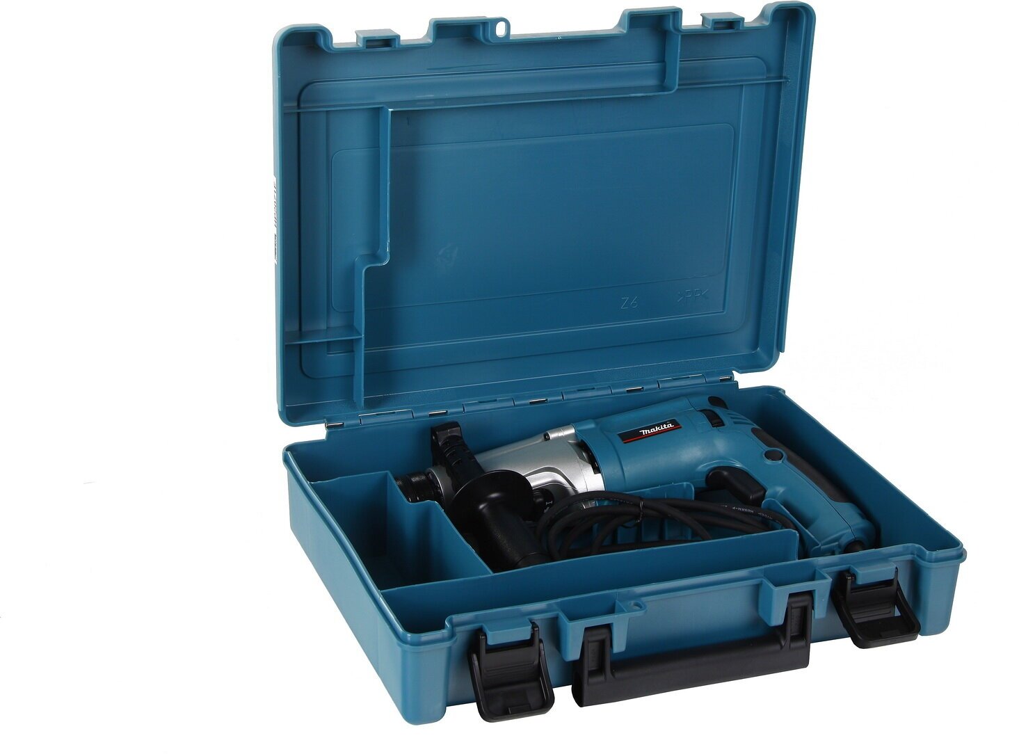 Anti-vibration system, additional handle, spotlight, drilling depth limiter, safety clutch, case included