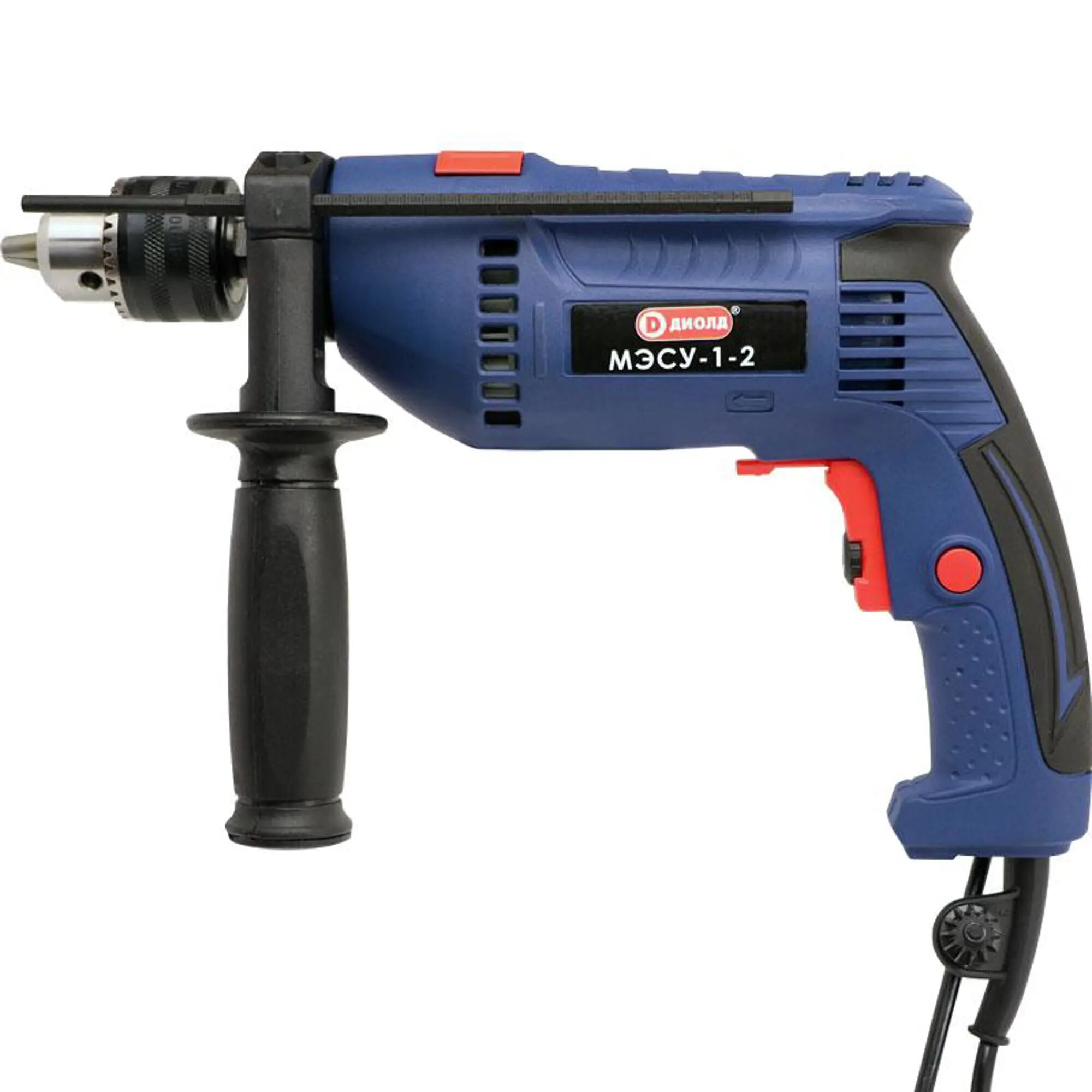 Power button lock, additional handle, drilling depth limiter, Depth limiter, Adjustable limiter, Rubber-coated handles