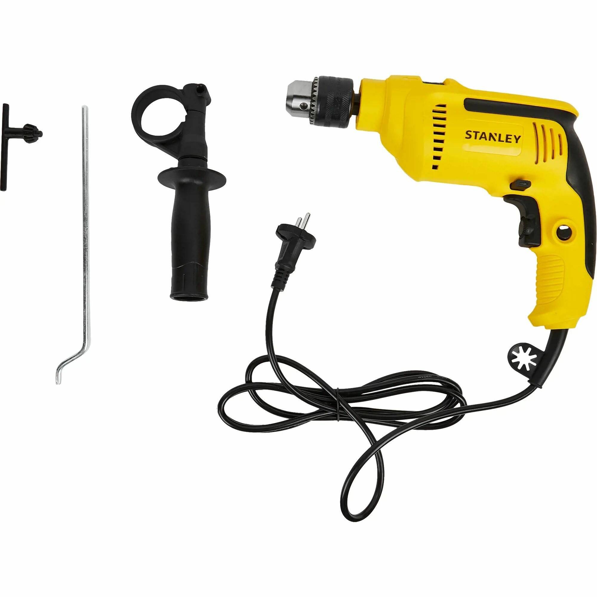 Description: Type: drill, power type: from the network, presence of a blow for the drill: impact, chuck type: key, functions: work in the rack of a drilling machine, reverse, rotation speed adjustment, power consumption: 700 W, features cons