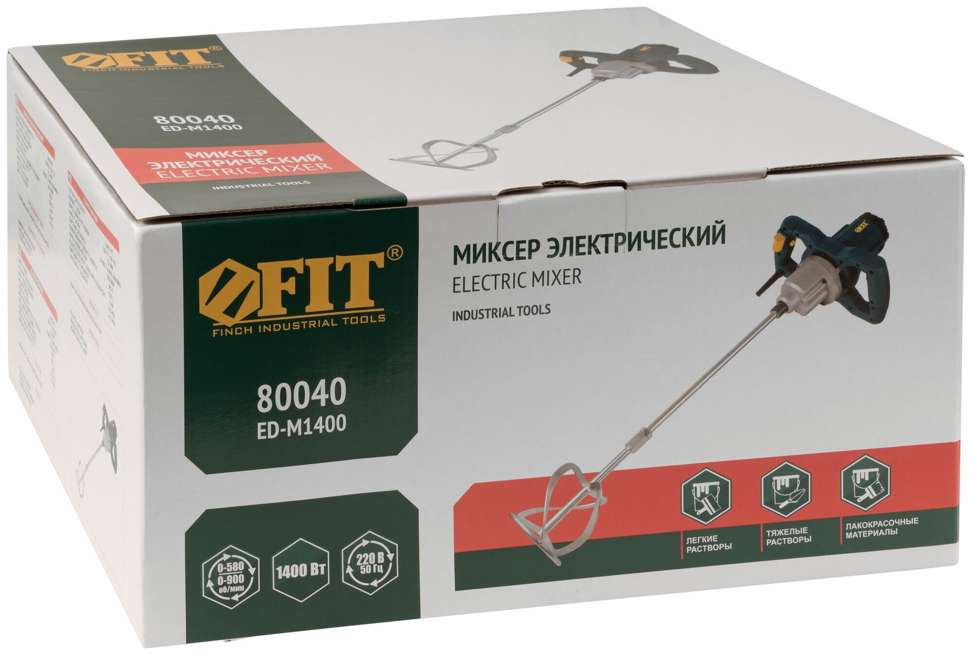 Type: mixer, presence of impact for drill: hammerless, power consumption: 1400 W, maximum torque: 72 Nm, number of operating speeds: 2, packaging: box