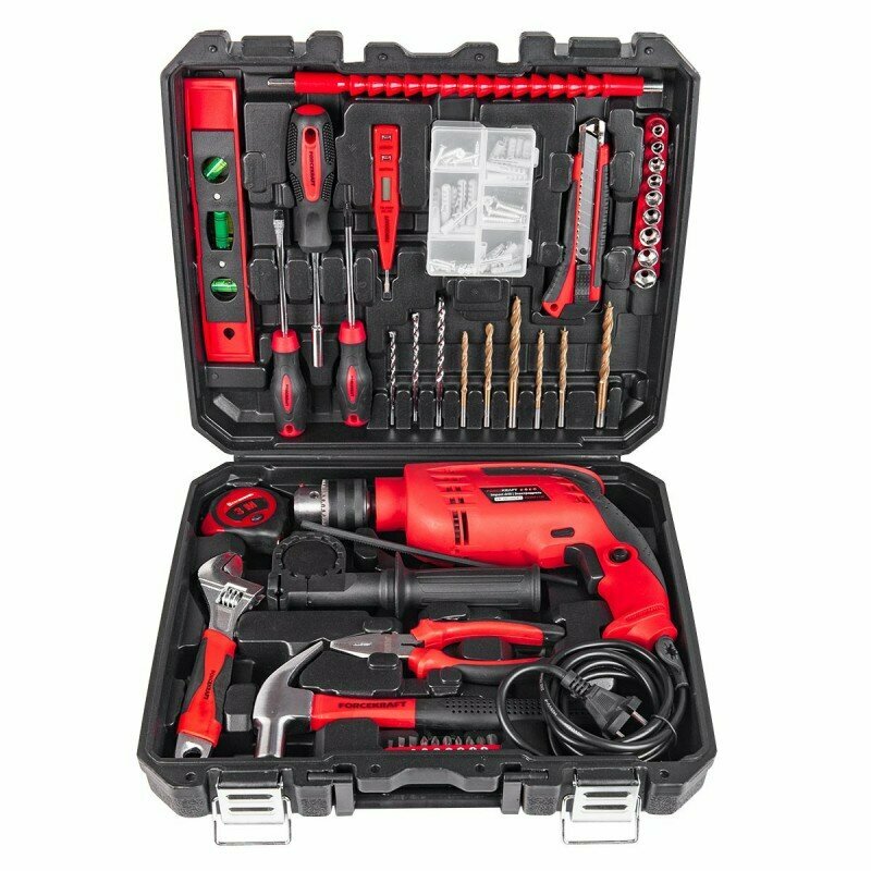 Electric drill with a set of tools 103pr 220V, 750W, 0-2900rpm FORCEKRAFT FK-20103 in a case