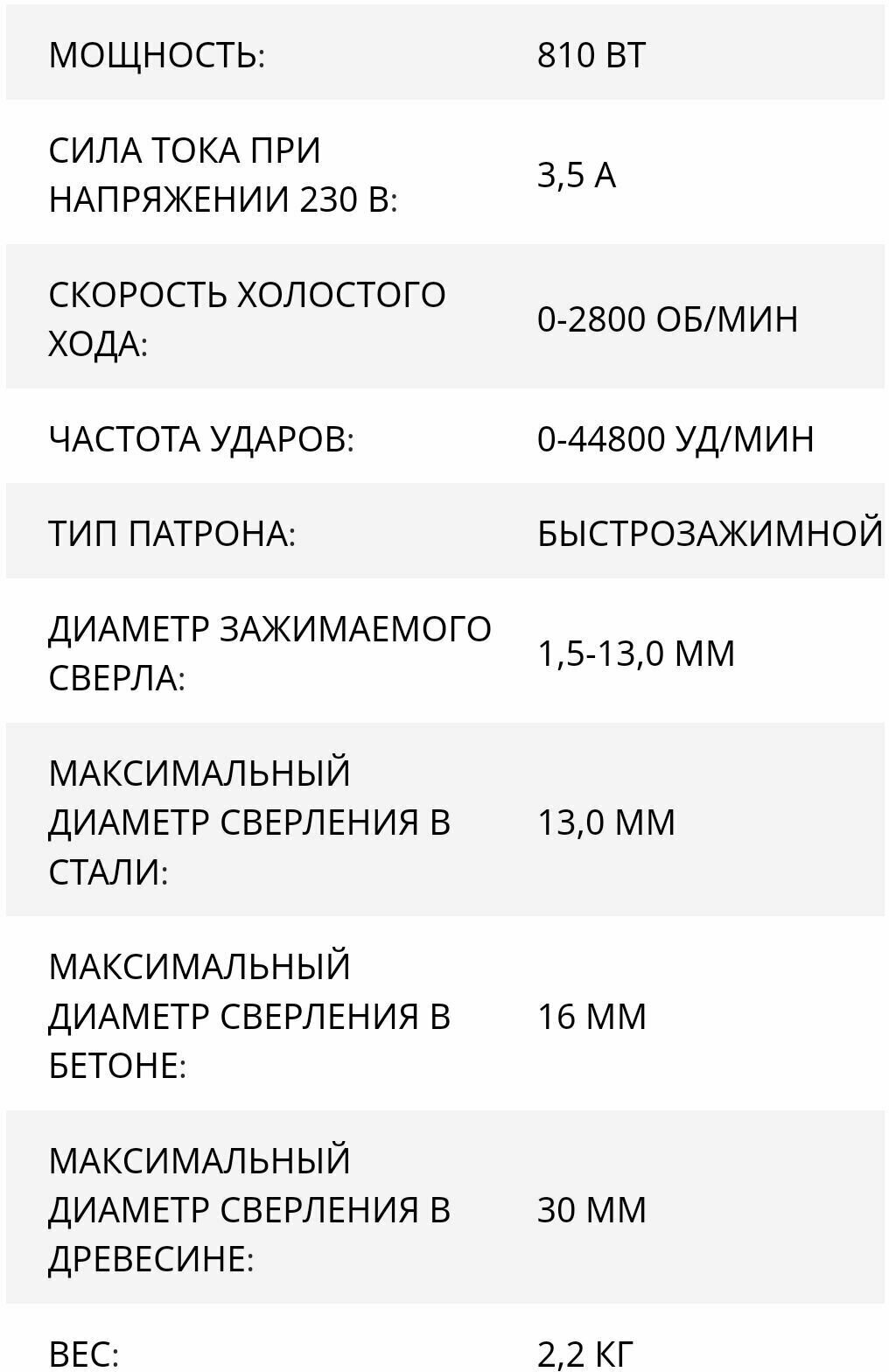 Type: drill, power type: mains, presence of impact for drill: impact, chuck type: key, functions: reverse, speed adjustment, power consumption: 701 W, maximum torque: 35 Nm, design features