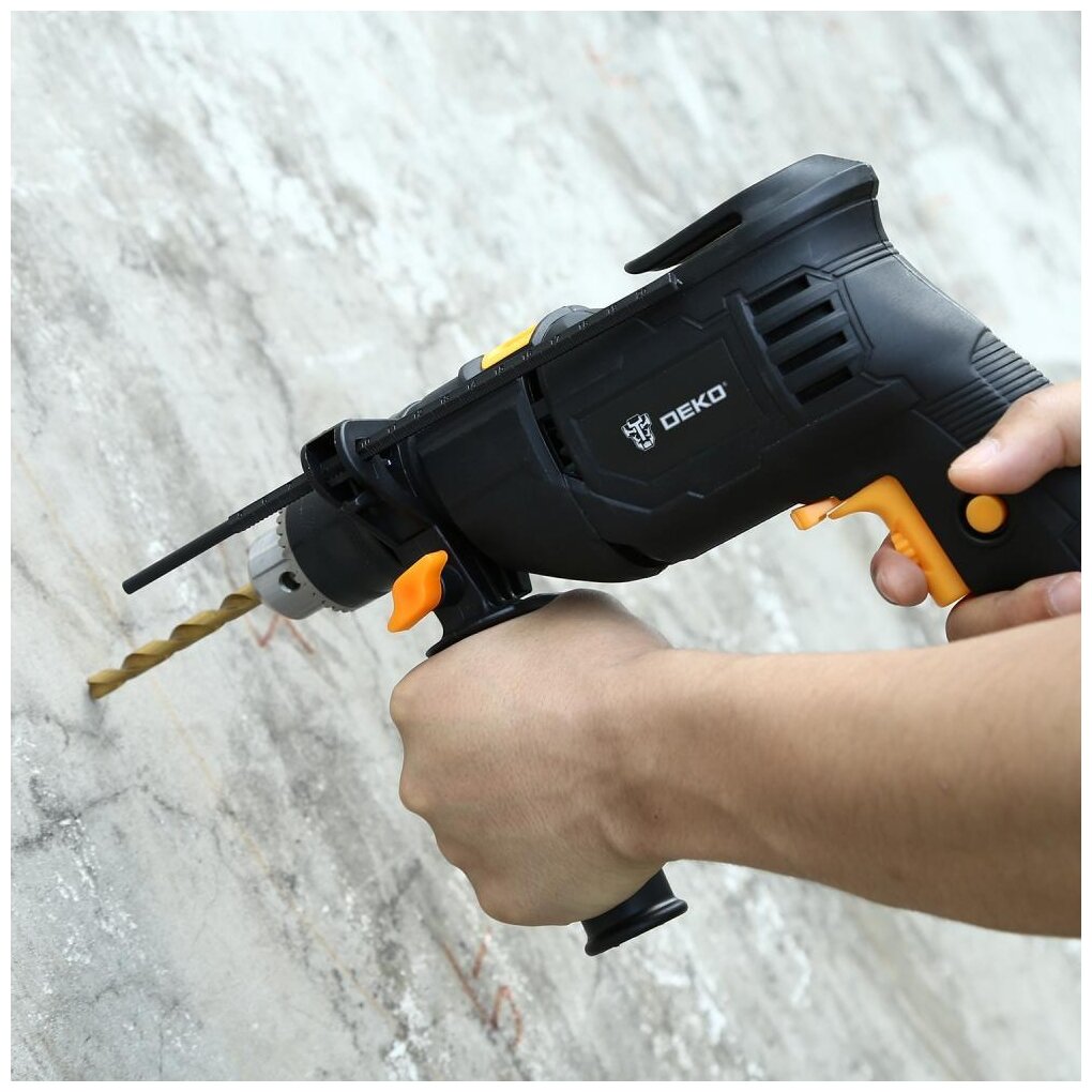 Type: drill, power type: mains, presence of impact for drill: impact, chuck type: keyless, functions: reverse, speed adjustment, keyless chuck, speed adjustment, drilling depth limiter