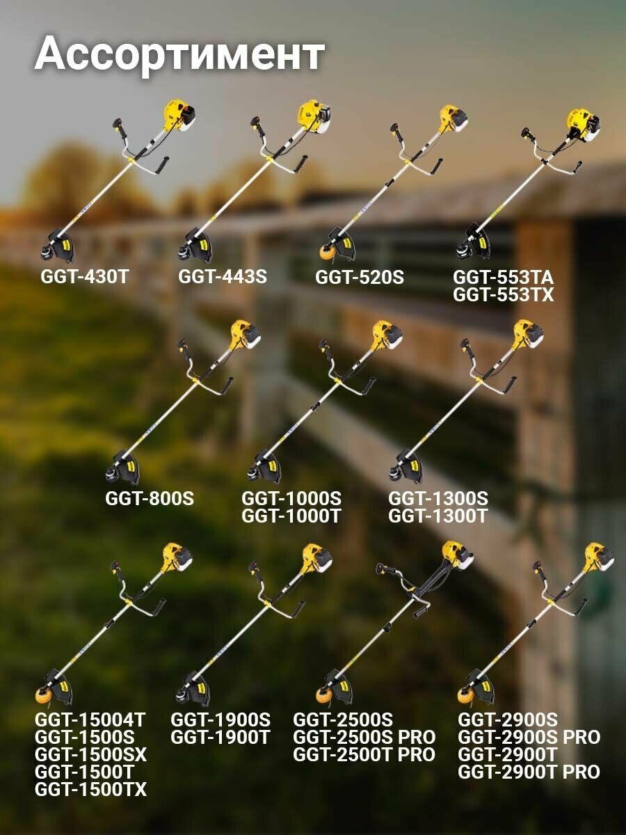 Type: trimmer, engine type: gasoline, trimmer cutting element: fishing line and knife, trimmer type: portable, rod design: straight, number of engine strokes: 2-stroke, power: 3.40 hp, power: 2500 W, location
