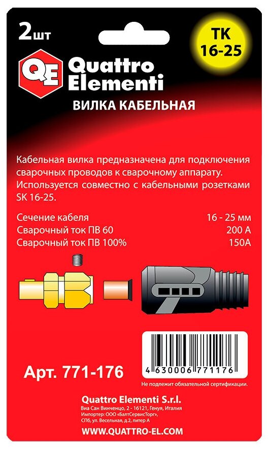 2 plugs with cable core cross-section 16-25 sq. mm