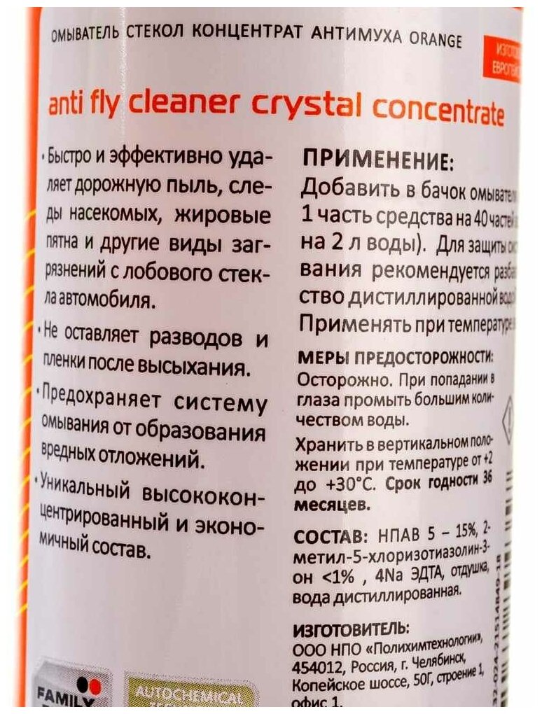 Concentrate, Minimum temperature for use, °C: +1, basis: water