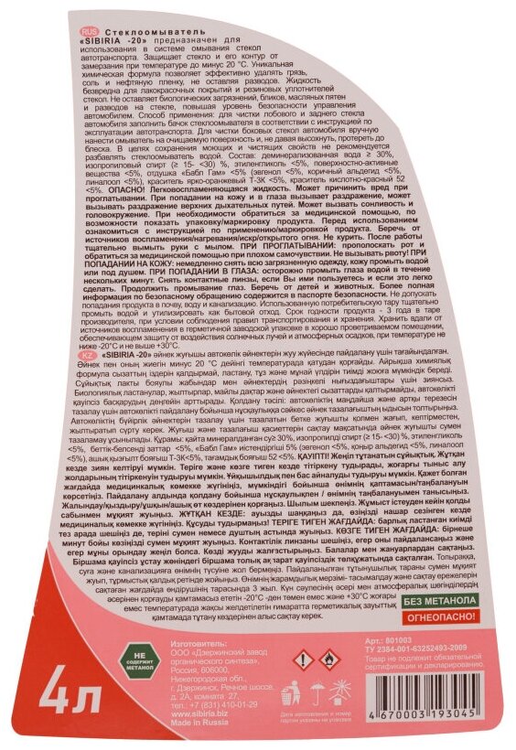 Minimum temperature for use, °C: -20, base: isopropyl alcohol
