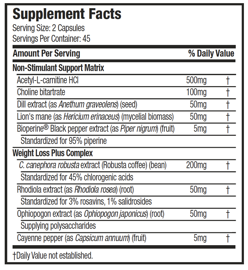 Type: thermogenic, dosage form: capsules/tablets, dietary features: no aspartame, no maltodextrin, no sucralose, for whom: for women, for men