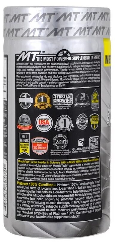 Composition: L-carnitine L-tartrate, bovine gelatin capsule, water, titanium dioxide, silicon dioxide, magnesium stearate, talc; Suggested Use: Take 1 serving 1 capsule 1-2 times daily with a glass of water