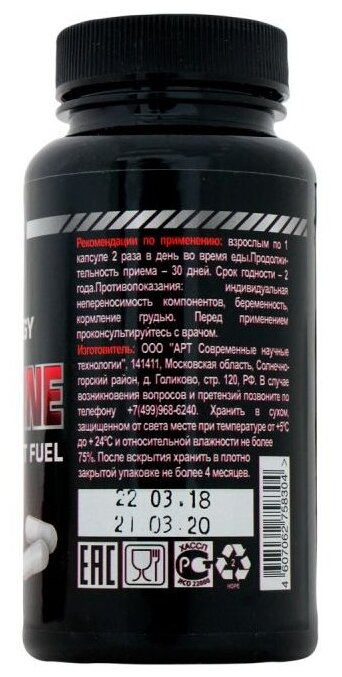 Contains anhydrous caffeine; composition: caffeine anhydryl, green coffee bean extract, carrier: E460, L-carnitine-L-tartrate, L-theanine, cocoa bean extract, anti-caking agents: E551, E470, black pepper extract, kale pepper powder