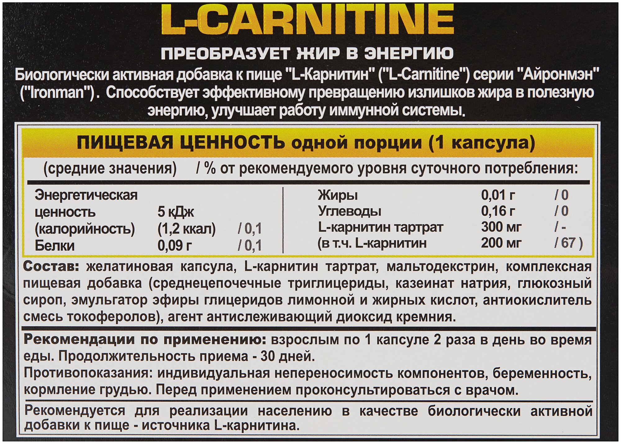 Type: L-carnitine, formulation: capsules/tablets, dietary features: non-GMO, no aspartame, no gluten, no lactose, no sucralose, vegan, vegetarian, for whom: for women, for men