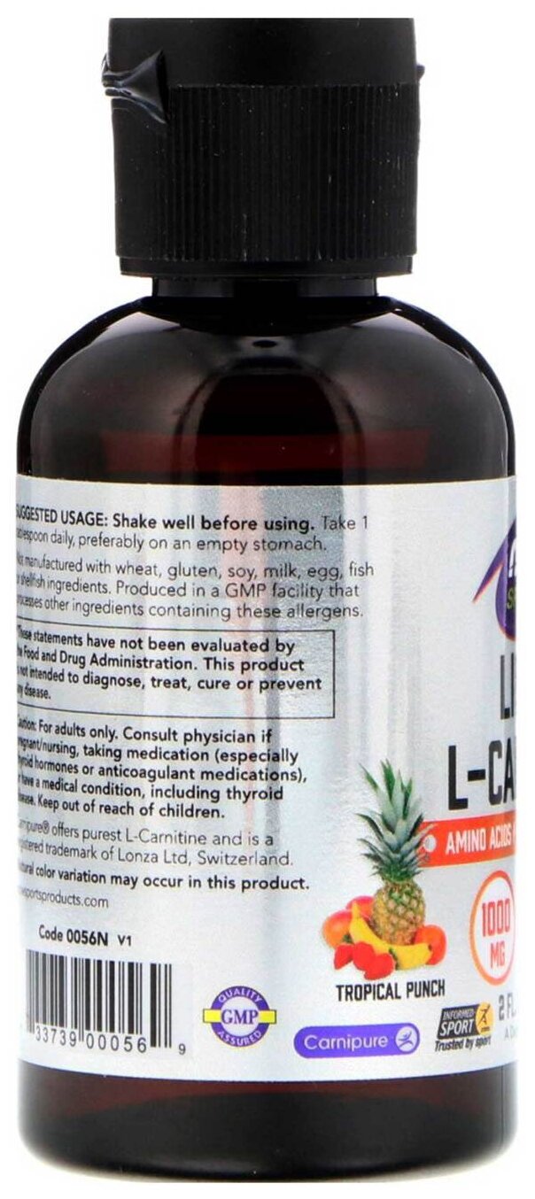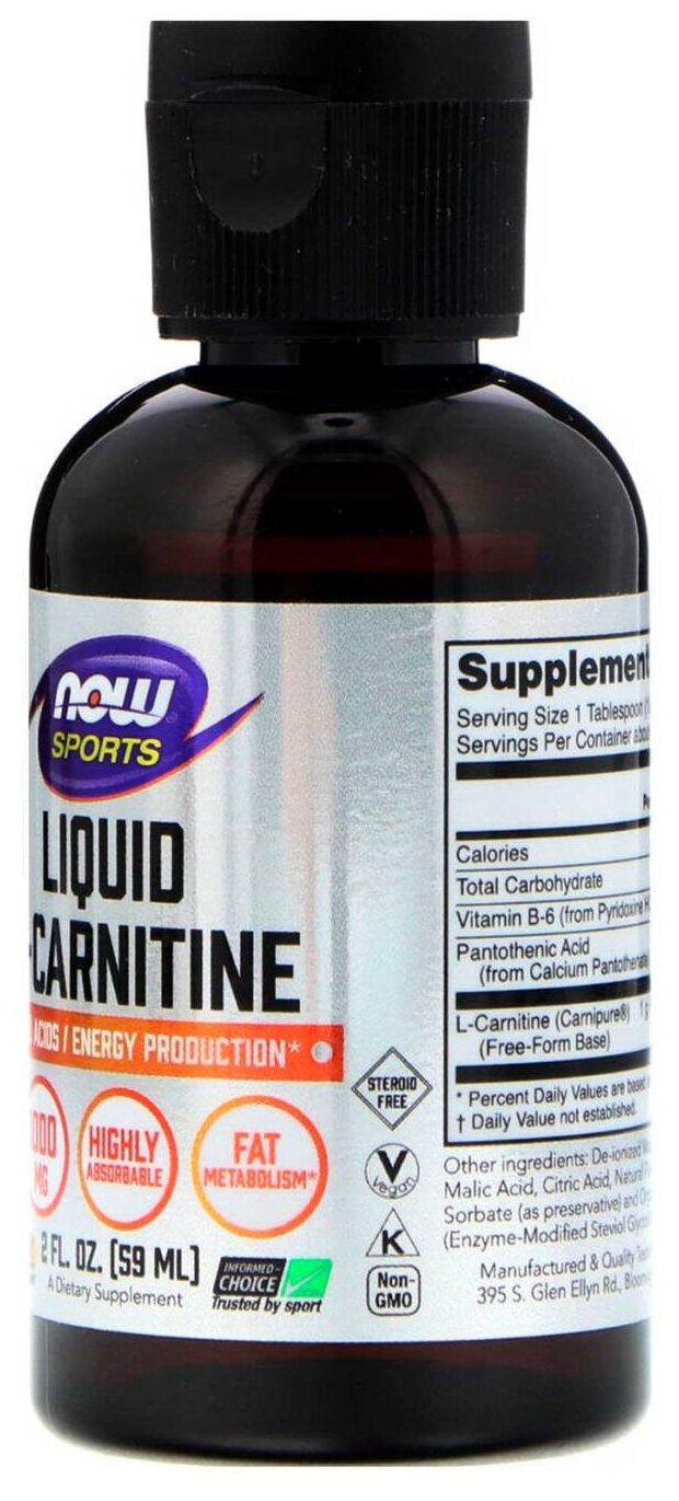Type: L-carnitine, dosage form: solution, dietary features: aspartame-free, gluten-free, lactose-free, maltodextrin-free, for whom: for women, for men