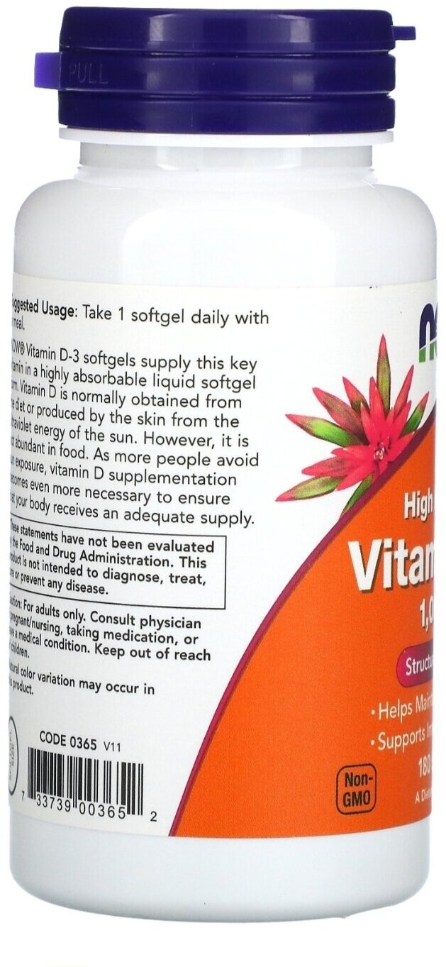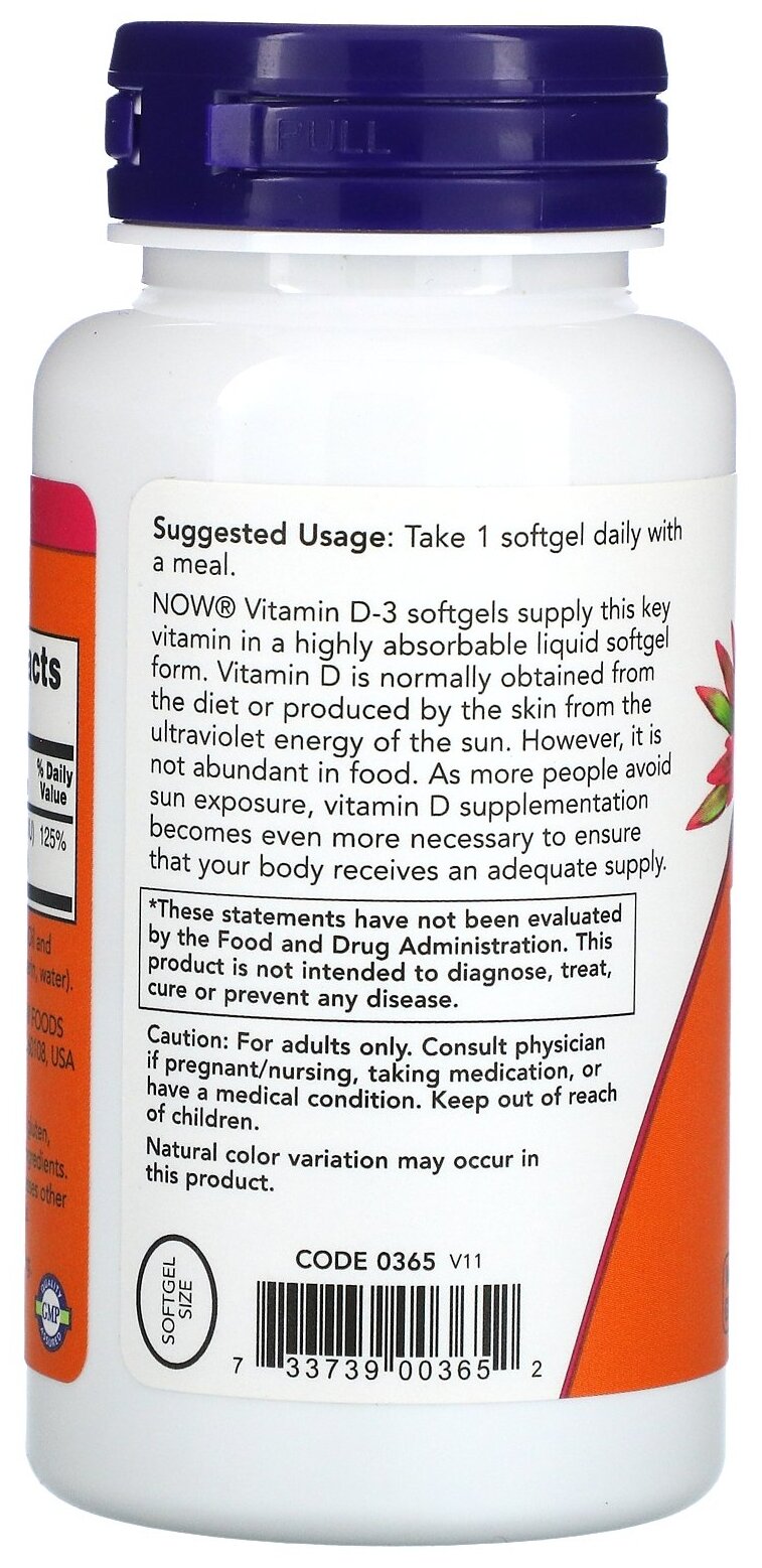 Vitamin D-3 cholecalciferol, olive oil, soft gelatin capsule from cattle skins, glycerin E422 stabilizer, water.