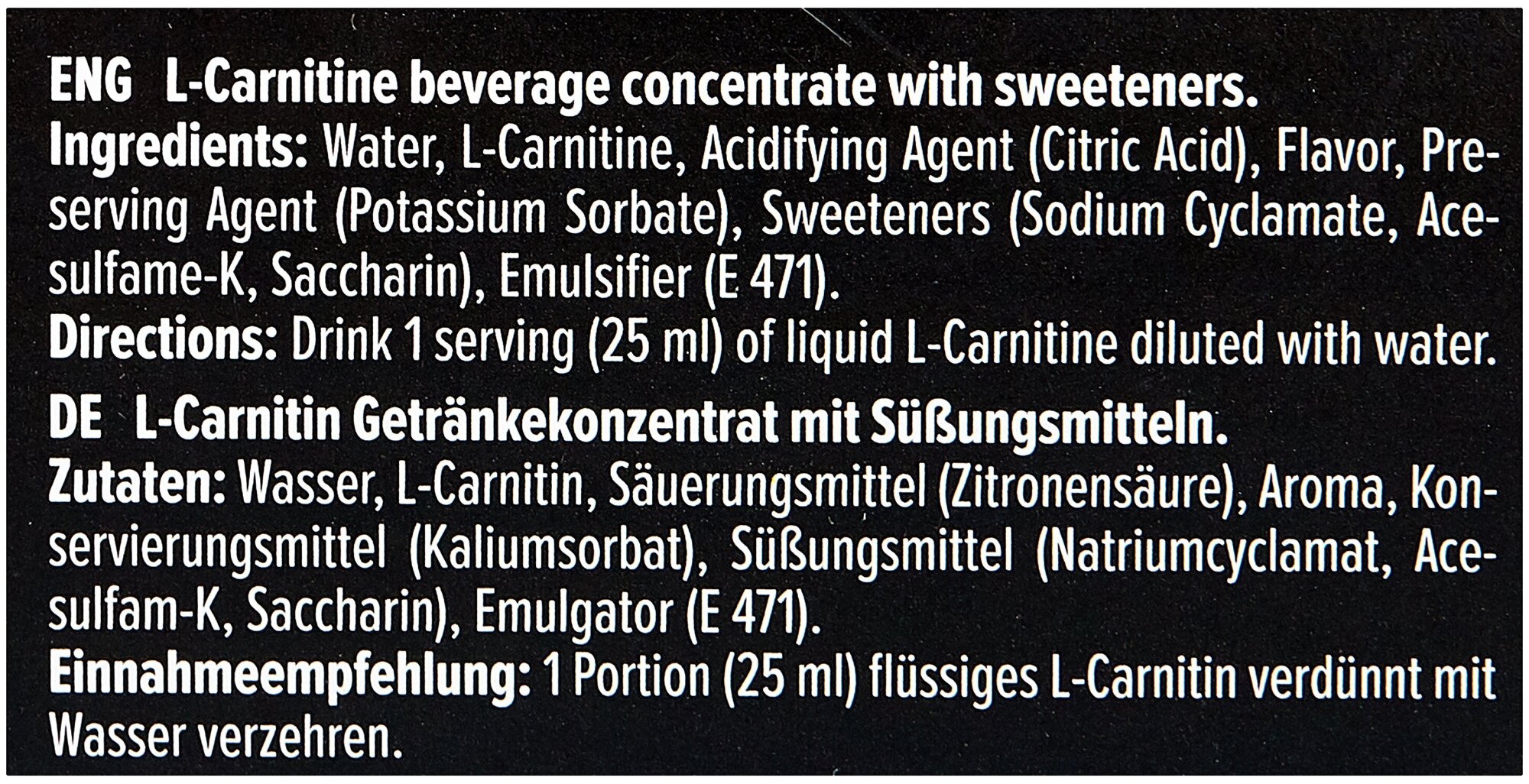 Type: L-carnitine, dosage form: solution, dietary features: no aspartame, no maltodextrin, no sucralose, for whom: for women, for men