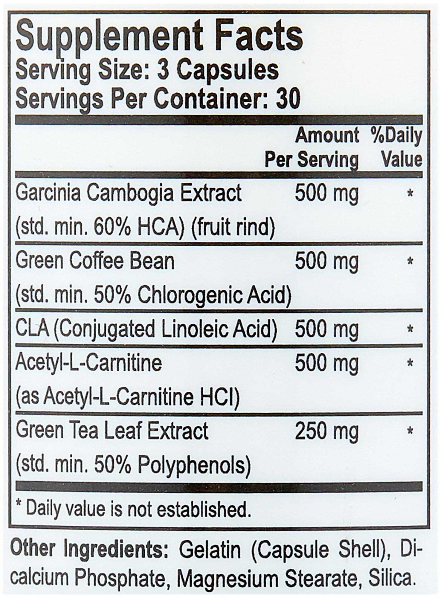 Contains anhydrous caffeine; composition: caffeine anhydryl, green coffee bean extract, carrier: E460, L-carnitine-L-tartrate, L-theanine, cocoa bean extract, anti-caking agents: E551, E470, black pepper extract, kale pepper powder